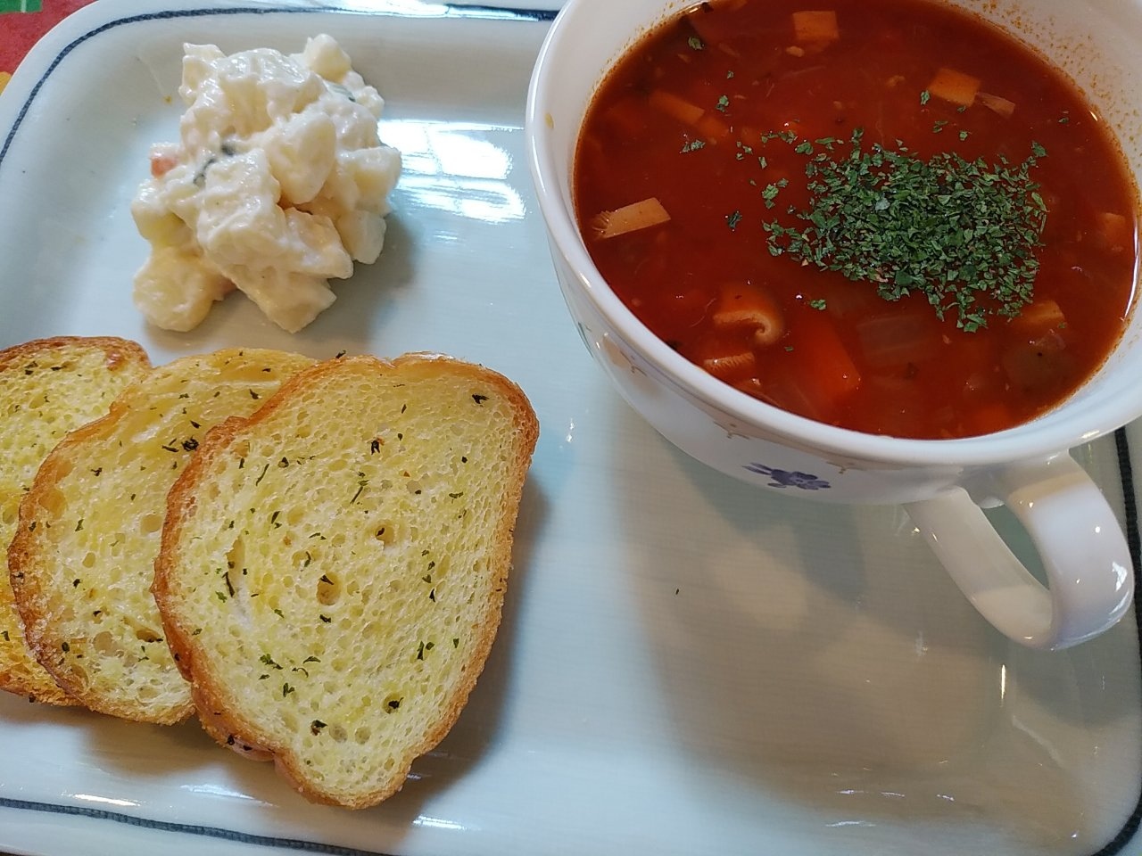 お昼ご飯は、博物館内のカフェでミネストローネ。
