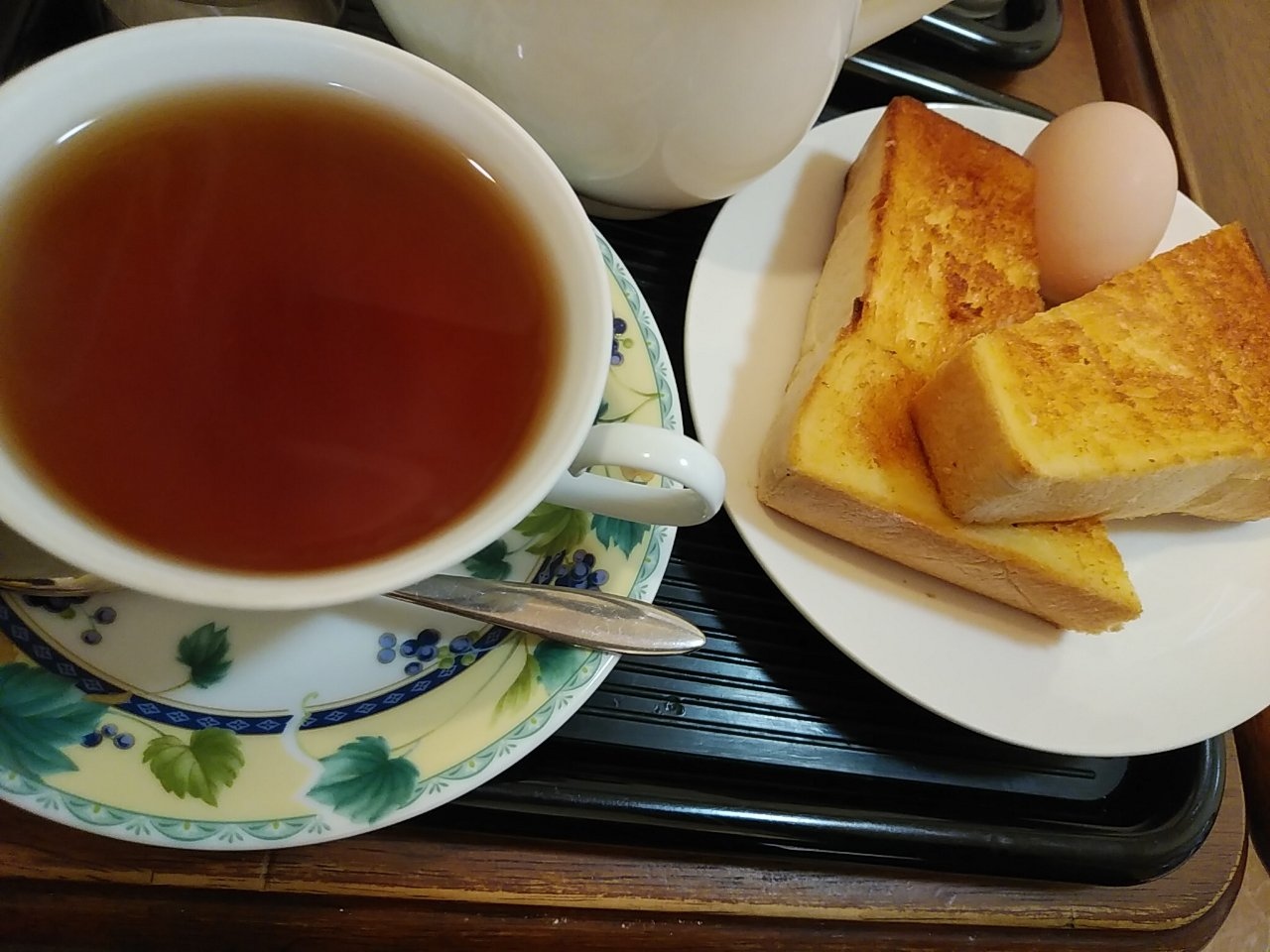 朝食は野毛の喫茶店で紅茶とトースト。