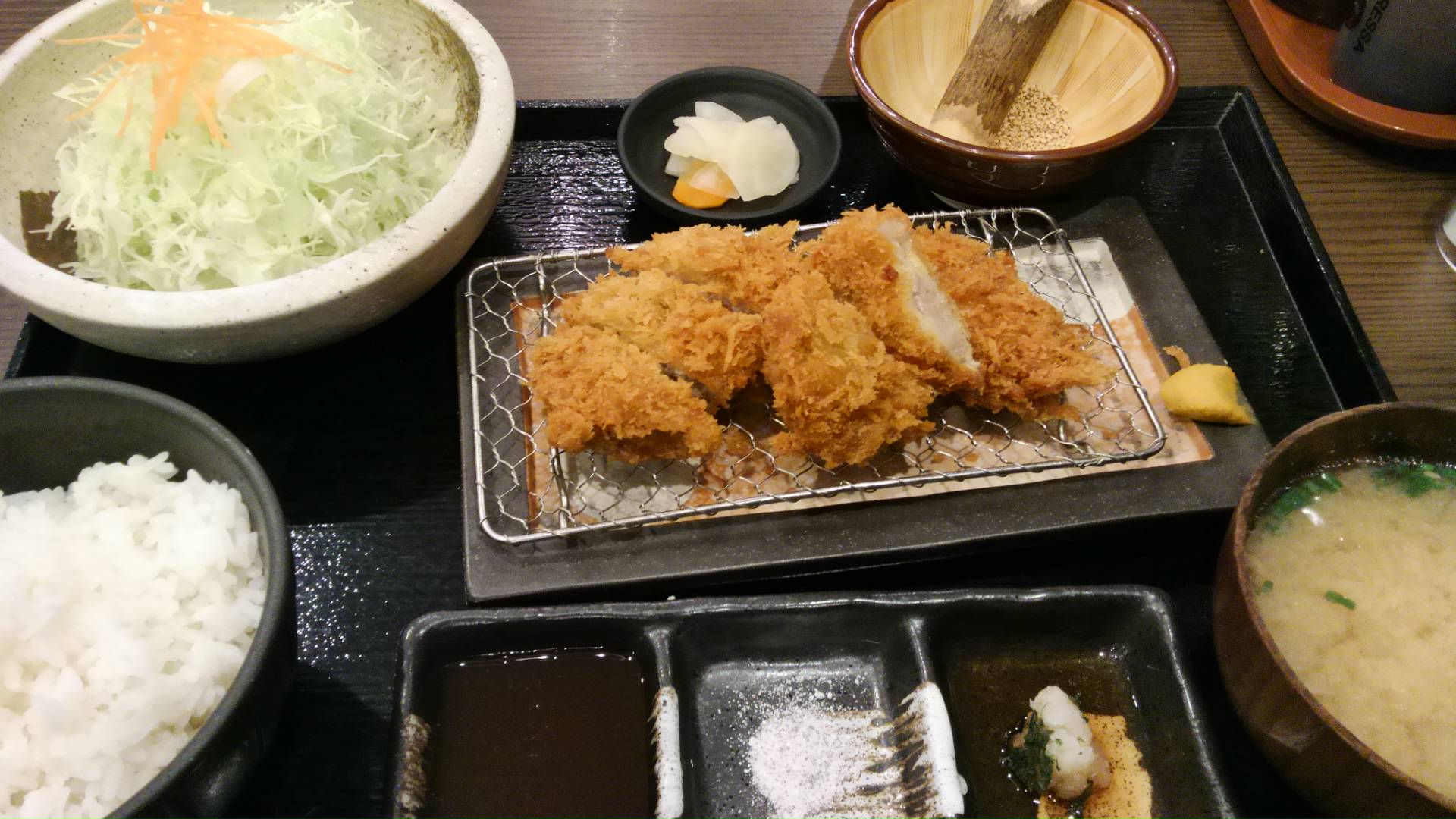 遅いお昼ご飯は、駅地下で、とんかつ定食。