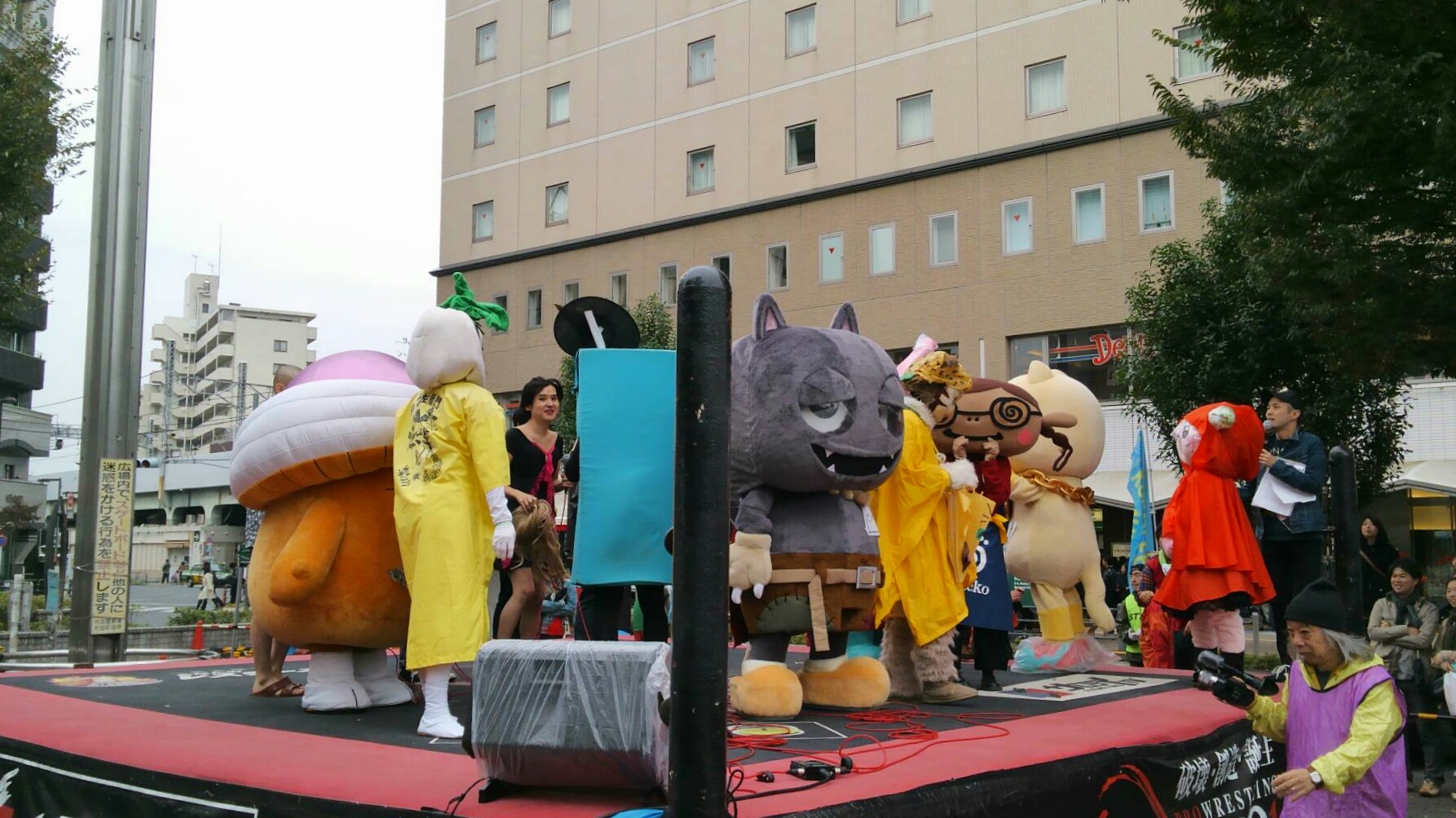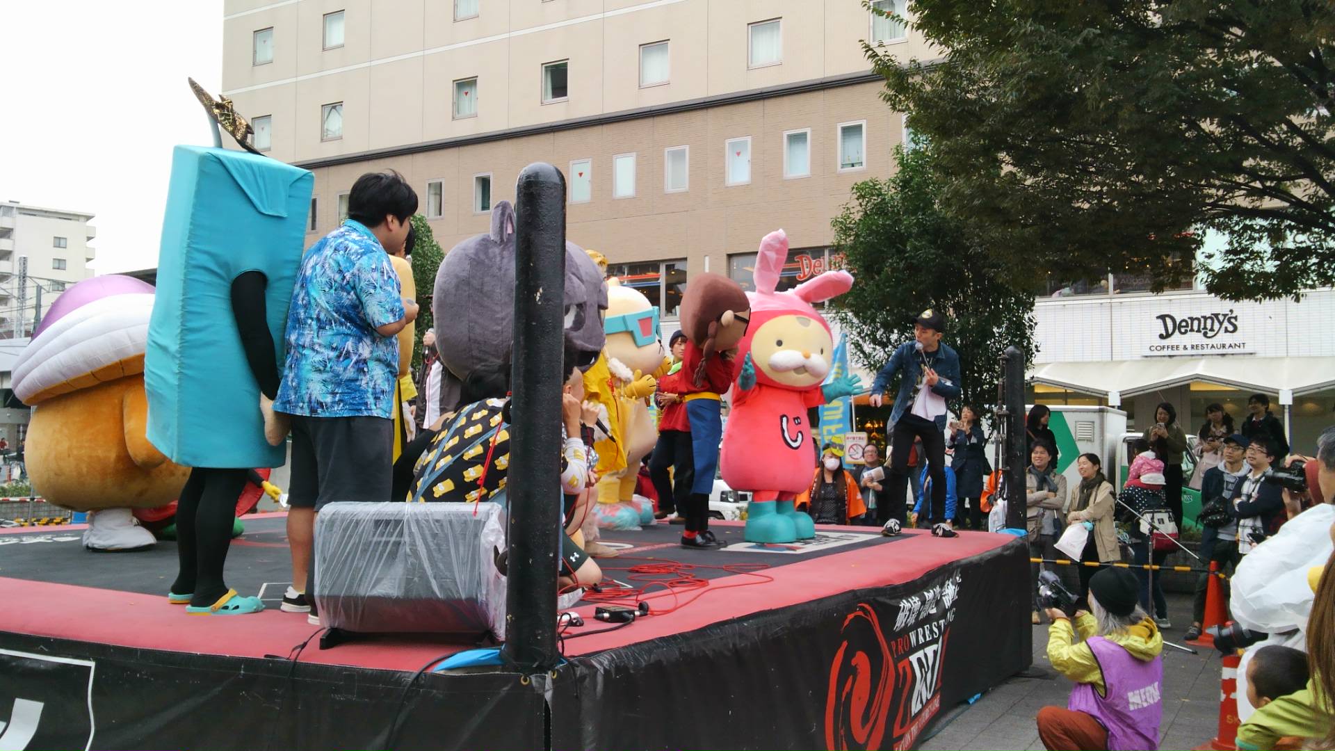 ゆるキャラプロレスは雨で中止。