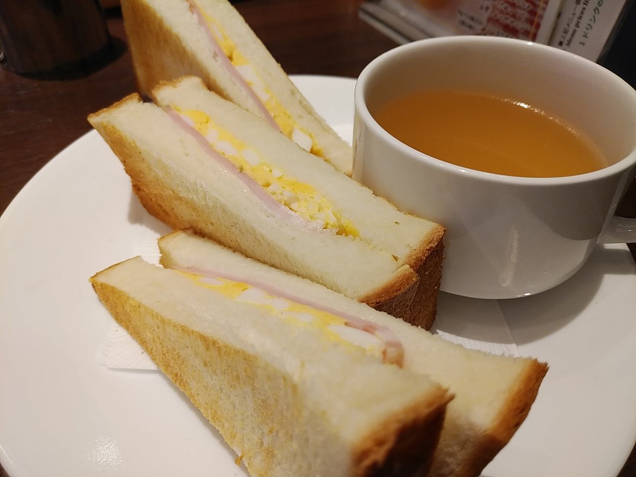 ハムタマゴトーストのモーニング。