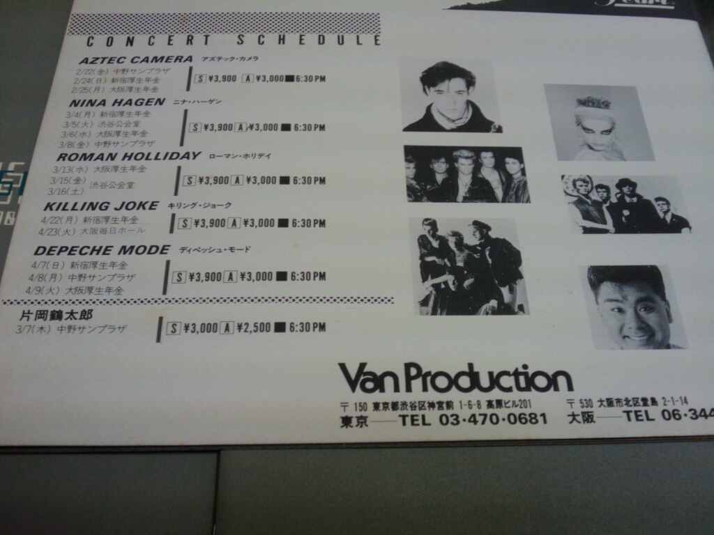 最後のページに他のアーティストの公演スケジュールが載ってるんだけど、アズテック・カメラから始まって…最後は日本の あのアーティスト!