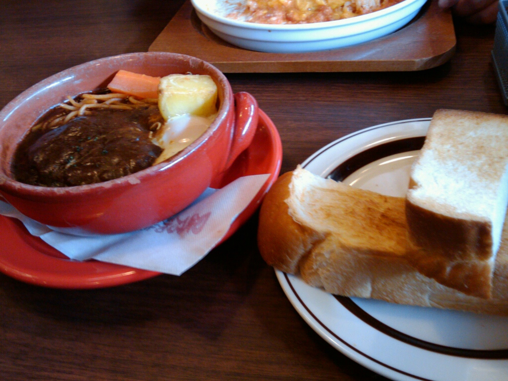今日のランチは、煮込みハンバーグとトーストでした。
