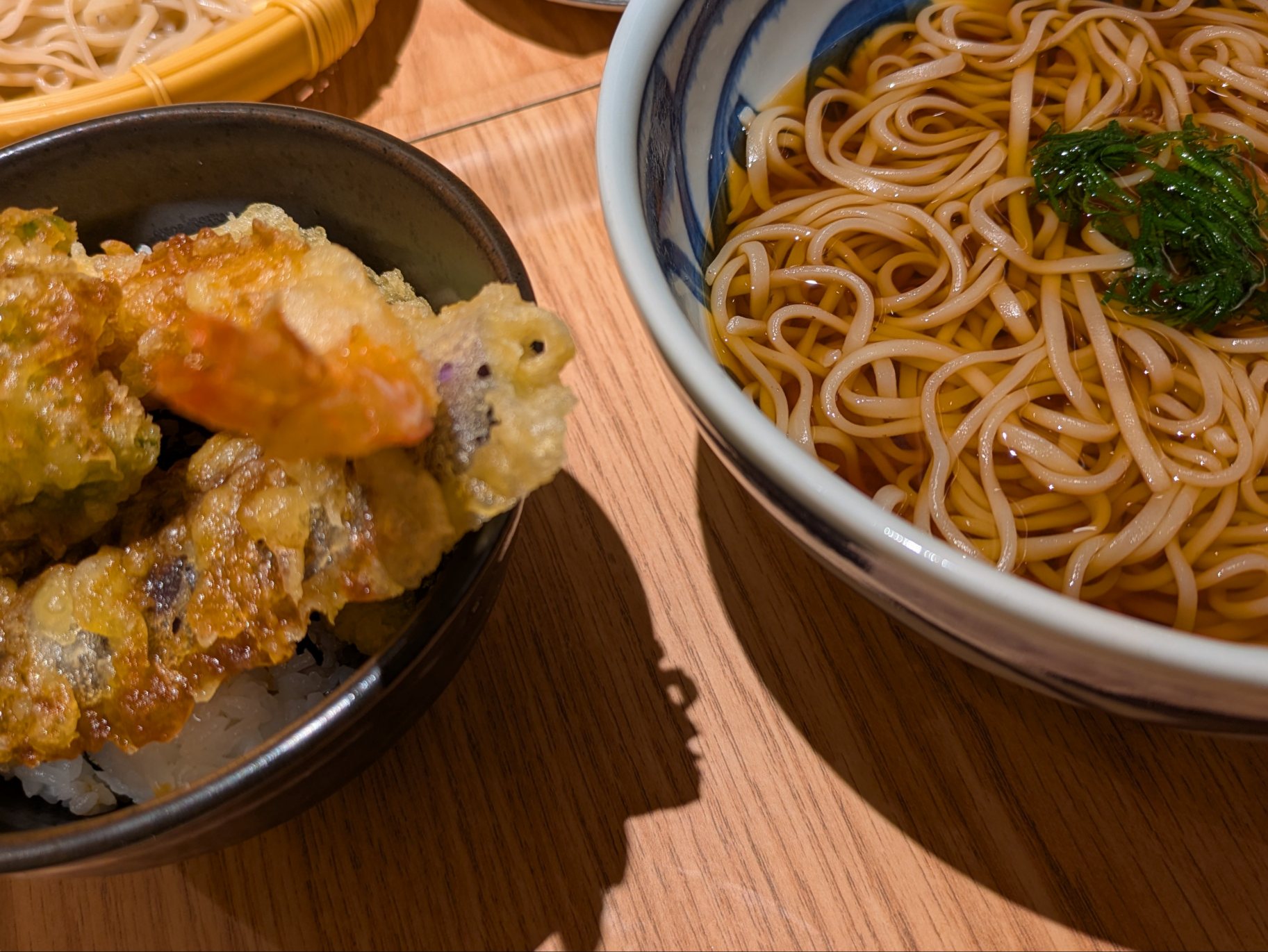 お昼ご飯は平塚で天丼と蕎麦。
