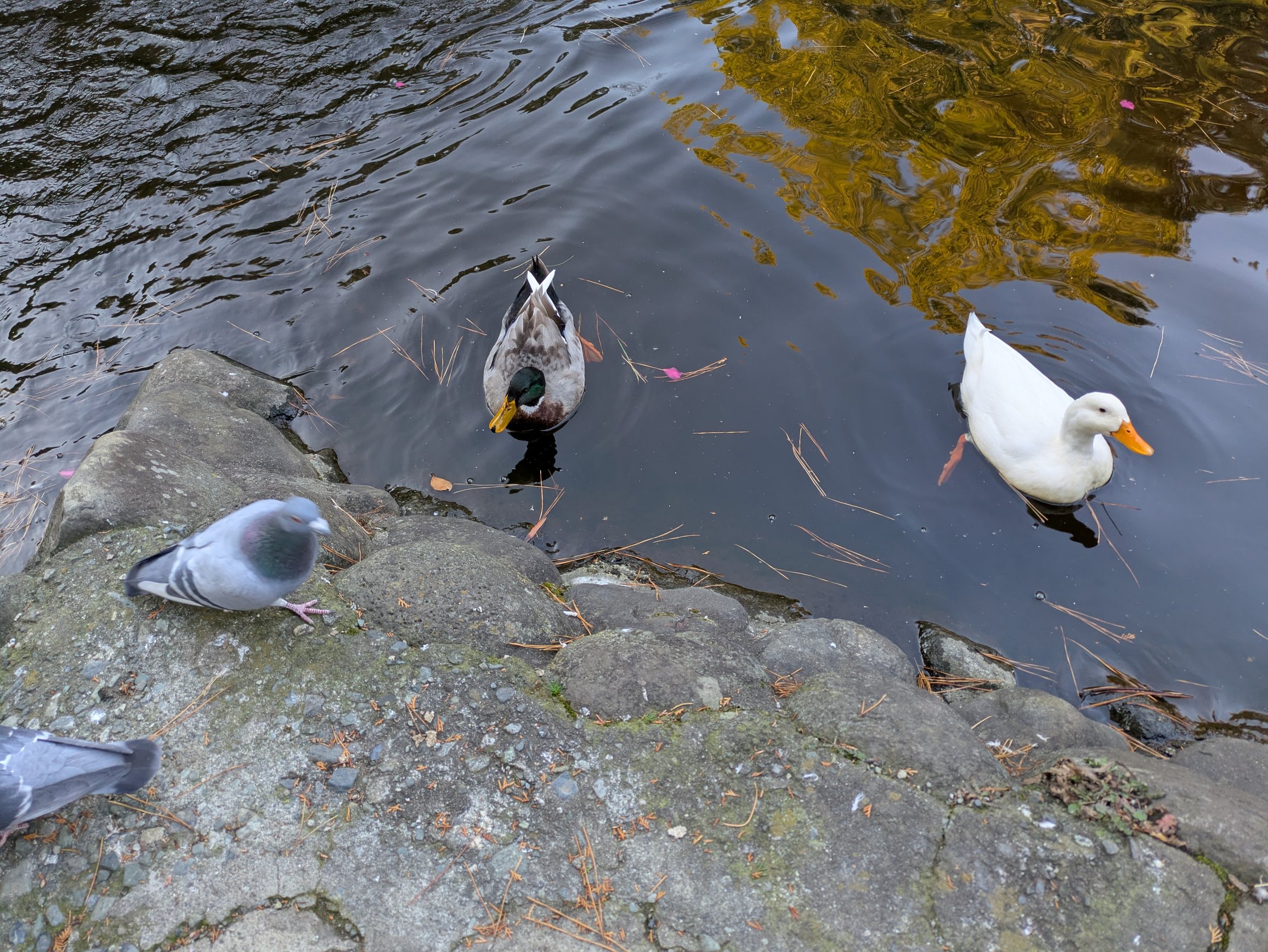 アヒルたちにエサやりなど。