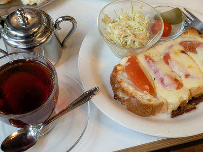 お昼ご飯は紅茶とチーズトースト。