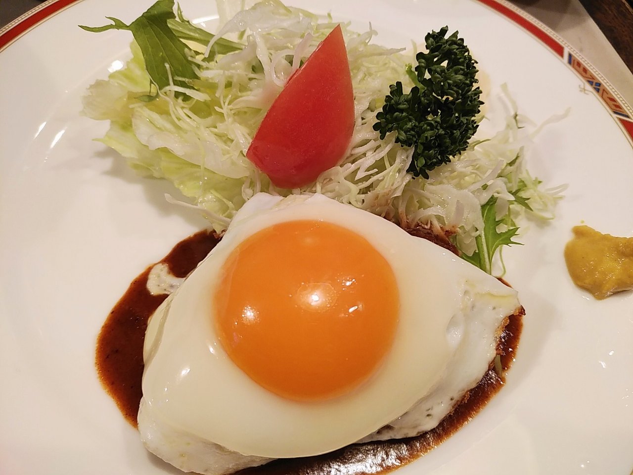 お昼ご飯は、細野さん行きつけの白金の洋食屋でハンバーグ定食。