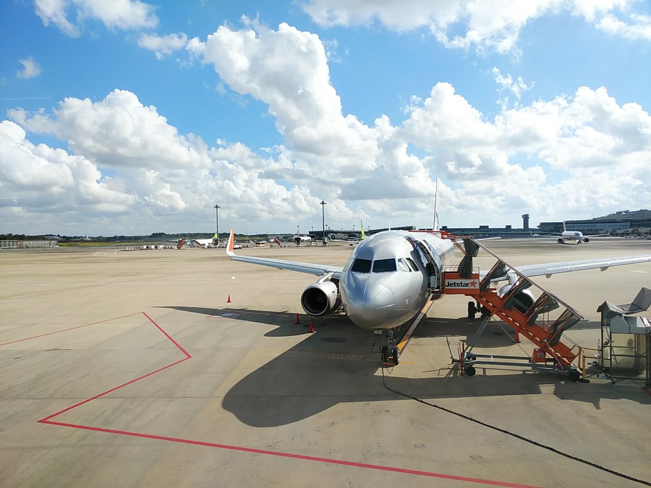 ジェットスターのフライトが1時間近く遅れた。