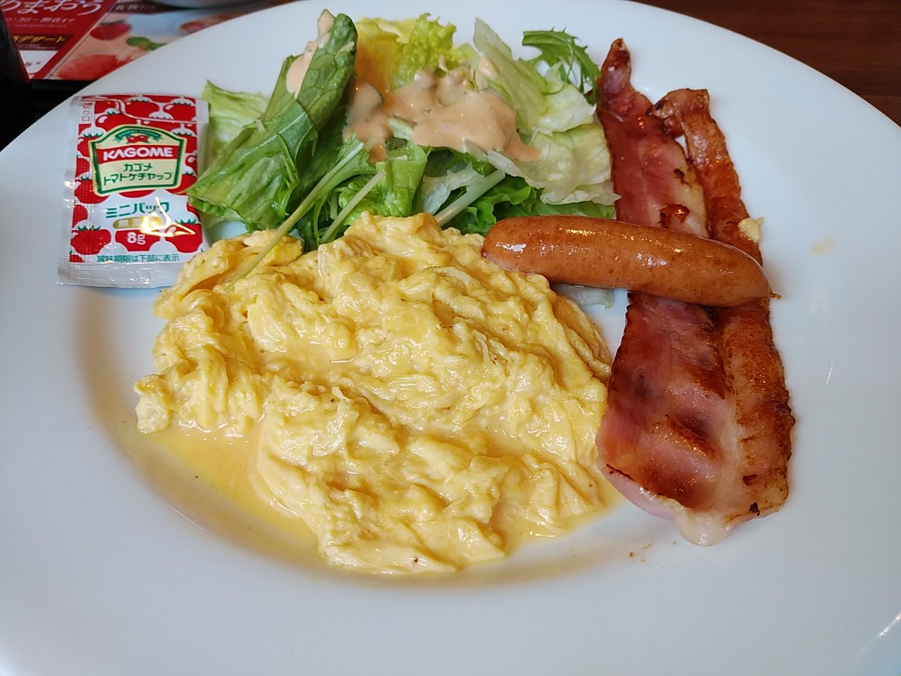 ファミレスで朝食。