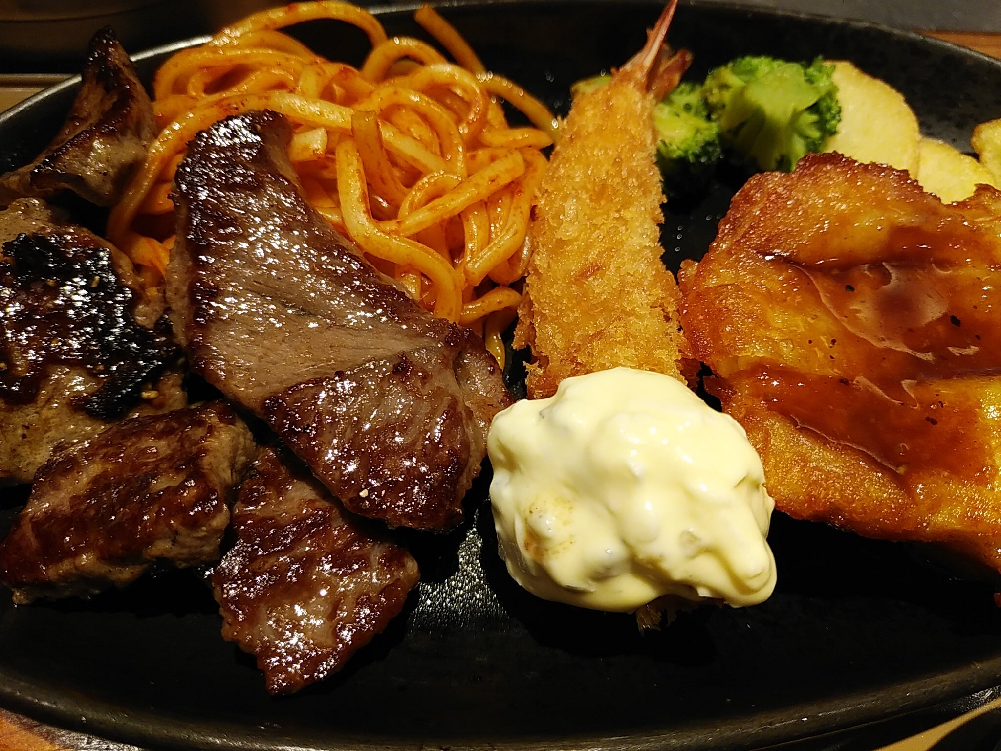 夜勤明けの朝ご飯は、やよい軒の和風おろしカットステーキミックス定食。