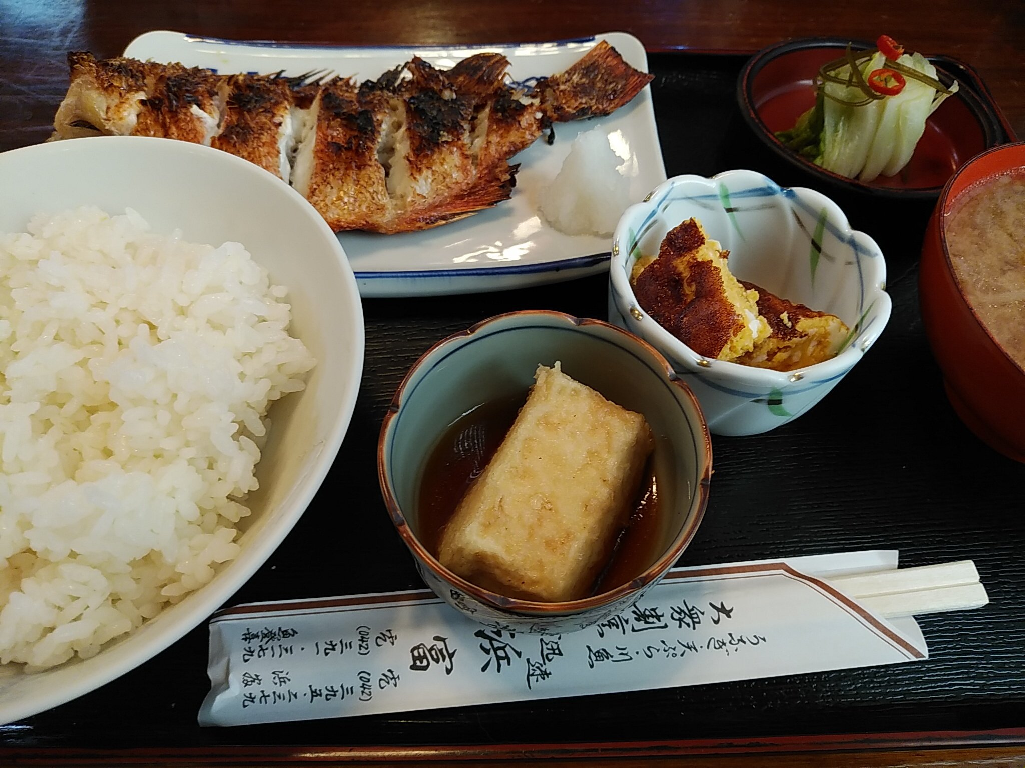 武蔵野線新秋津駅から歩いて西武池袋線秋津駅へ行く途中ちょうどお昼だったので新秋津駅近くの店で鯛の粕漬け定食のランチ。