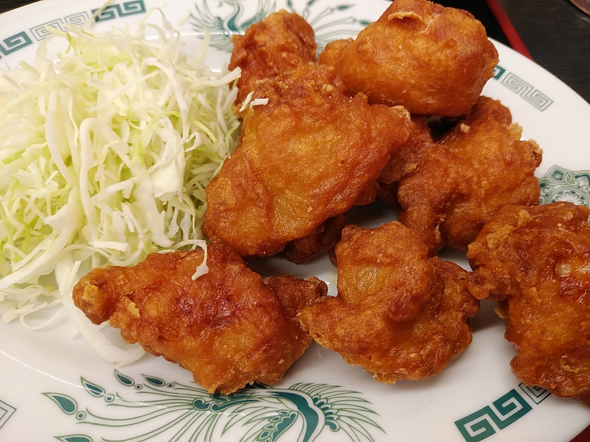 晩ご飯は、日高屋の唐揚げ定食。