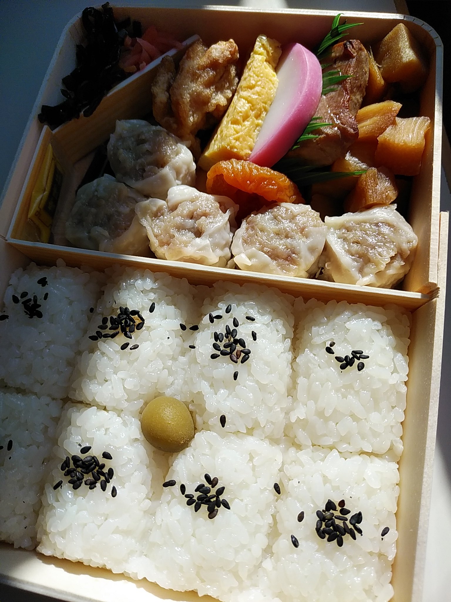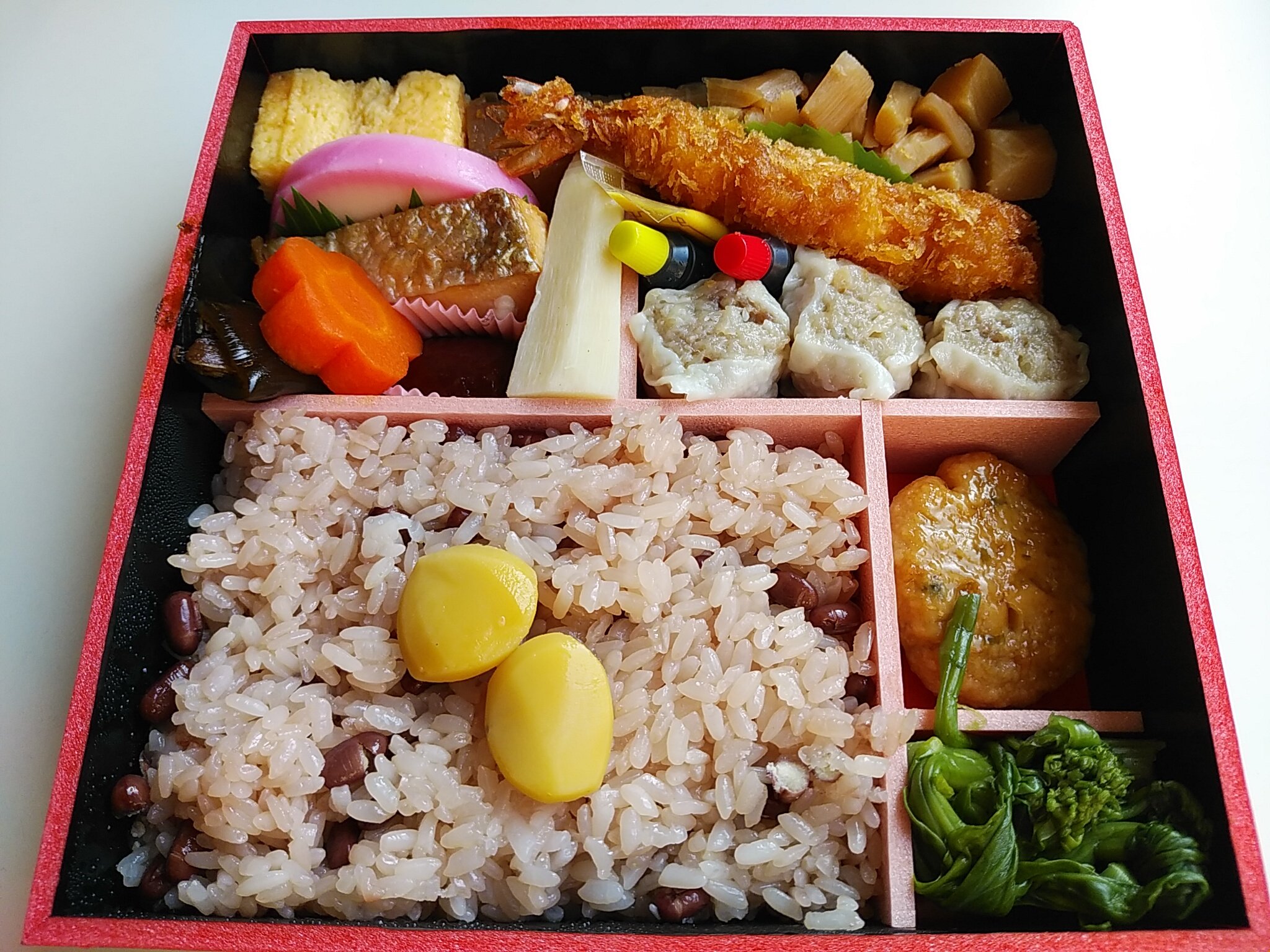 お昼ご飯は、崎陽軒のお赤飯弁当。