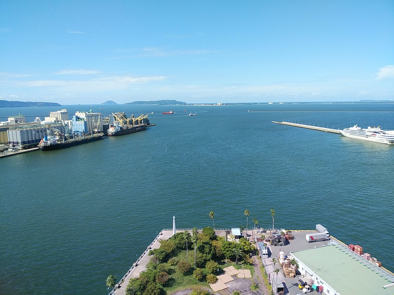 タワーから眺めた博多港。