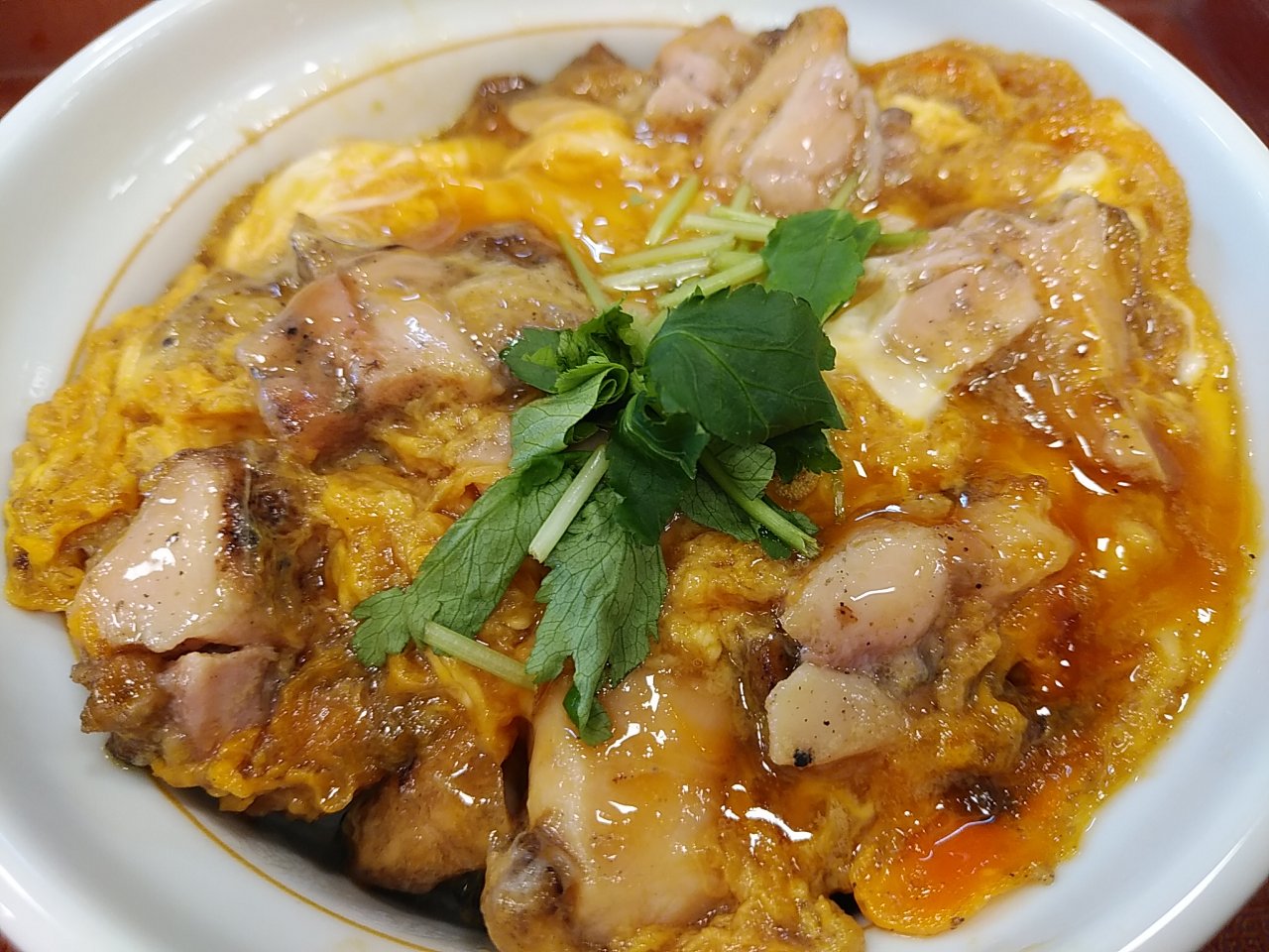 昨日の朝ご飯は、炭火焼き親子丼。